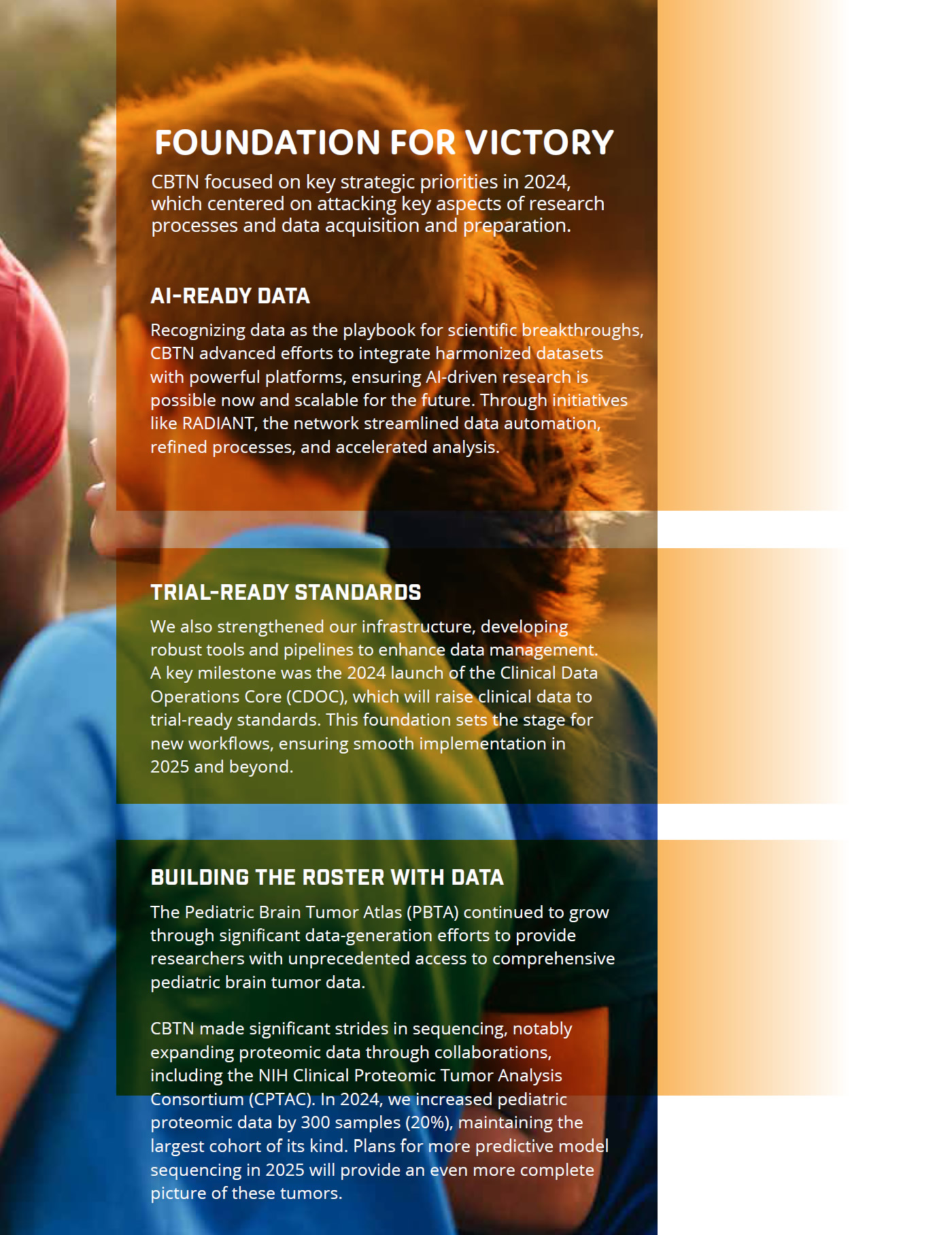 Like a title-winning team, our progress in conquering pediatric brain tumors is built on collaboration, innovation, and unwavering dedication. We at CBTN are grateful to champion this vital effort.